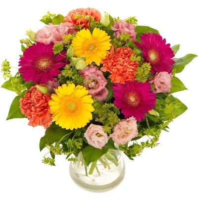 Verschenke pures Vergnügen mit diesem farbenfrohen Strauß. Durch Leichtigkeit bestechen hier Germini und Dianthus, welche von Floristenhand geschmackvoll aufgebunden werden. In Zusammenarbeit mit deutschen Floristenexpert:innen kreiert Mit Sorgfalt und Liebe von Hand gefertigt Garantierte Zustellung durch eine:n Partnerflorist:in