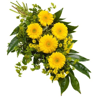 Ein aufmunternder gelber Trauerstrauß, fachmännisch arrangiert von den engagierten Floristen von Euroflorist. Diese Komposition enthält Blumen wie leuchtend gelbe Gerbera und Tanacetum vor einem Hintergrund aus üppigem Grün. Die Farbe Gelb steht für Wärme und die Würdigung eines gut gelebten Lebens. Euroflorist stellt sicher, dass jeder Strauß zu einem erschwinglichen Preis die Gefühle des Verstorbenen zum Ausdruck bringt und eine schöne und bedeutungsvolle Anerkennung an den Verstorbenen darstellt.
